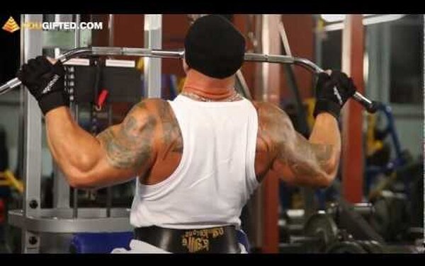 Тяга верхнего блока к груди — упражнение для развития широчайших мышц спины.