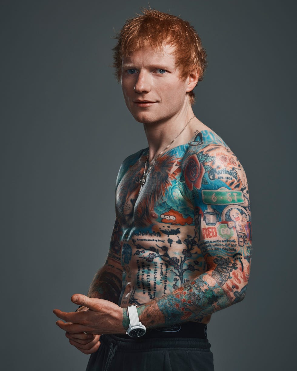 Независимо от того, намеренно это или нет, в раскрытии телосложения Ширана на съемочной площадке есть определенная степень напряжения. Он приходит в мешковатой толстовке с капюшоном и спортивных штанах, скрывающих под ними разорванный силуэт; результат многолетней упорной работы и последовательности. Честно говоря, поначалу это зрелище вызывает некоторое удивление. В конце концов, мы привыкли видеть в нем просто Эда. Соответствующий, возможно, ошибочный, настоящий. Повлияет ли новая упаковка из шести кубиков на это восприятие и запятнает его привлекательность? Эта мысль также пришла в голову Ширану. Оказывается, в его команде были люди, которые предостерегали его от появления на обложке.