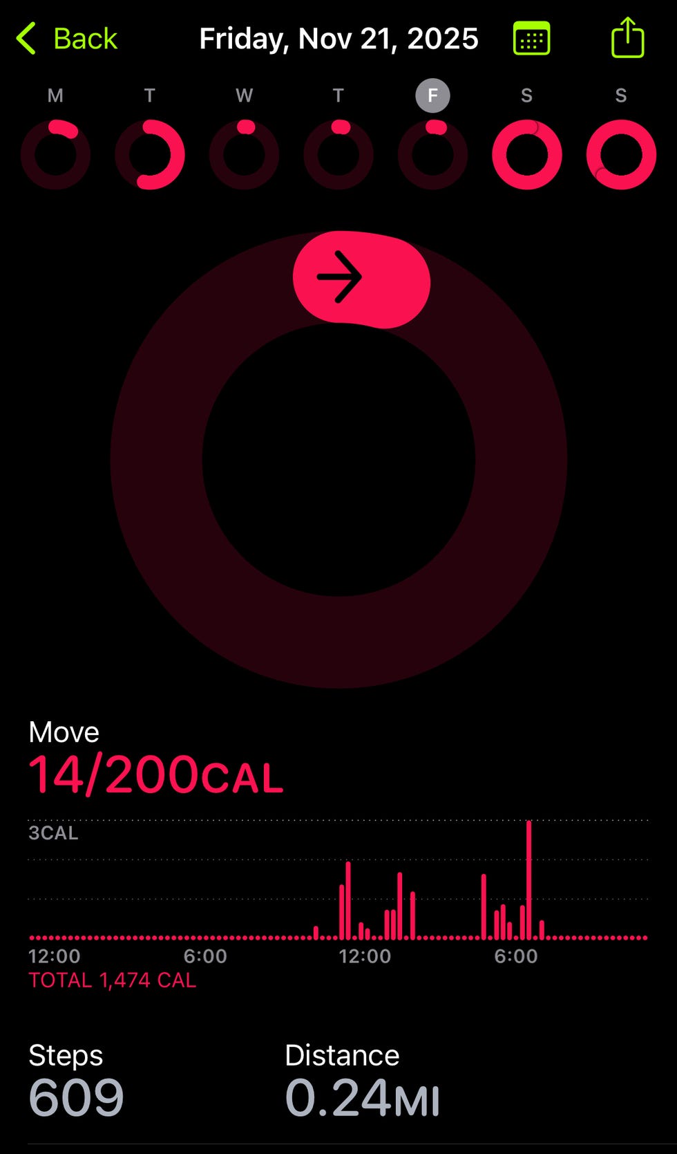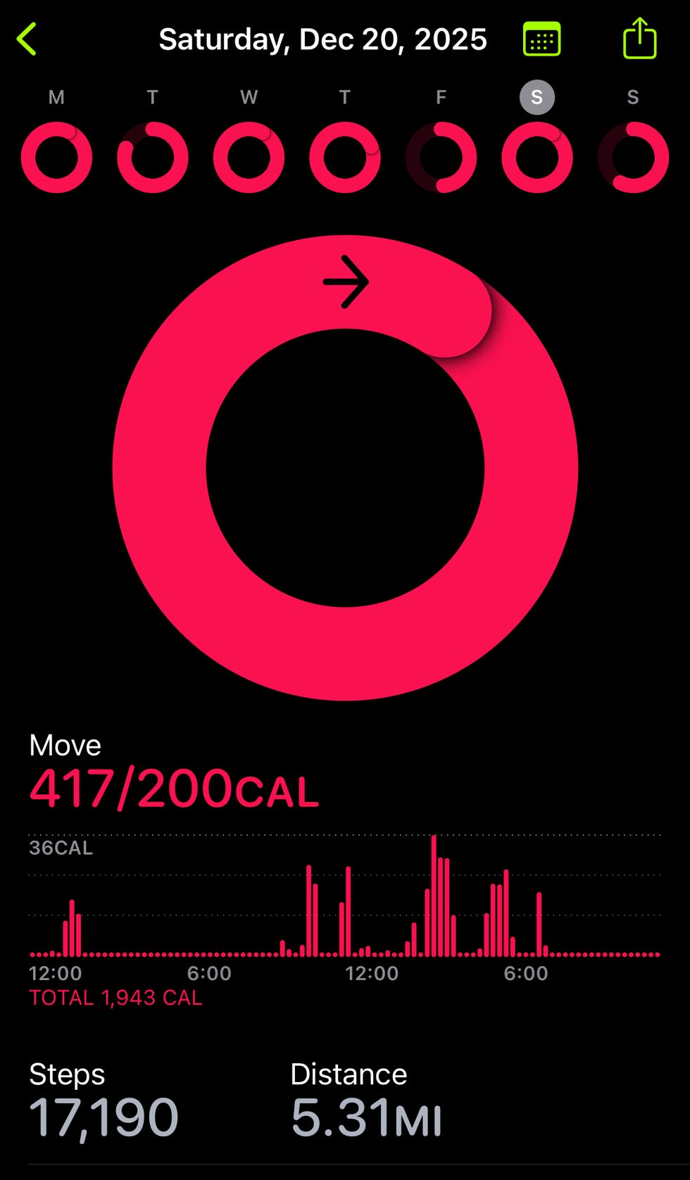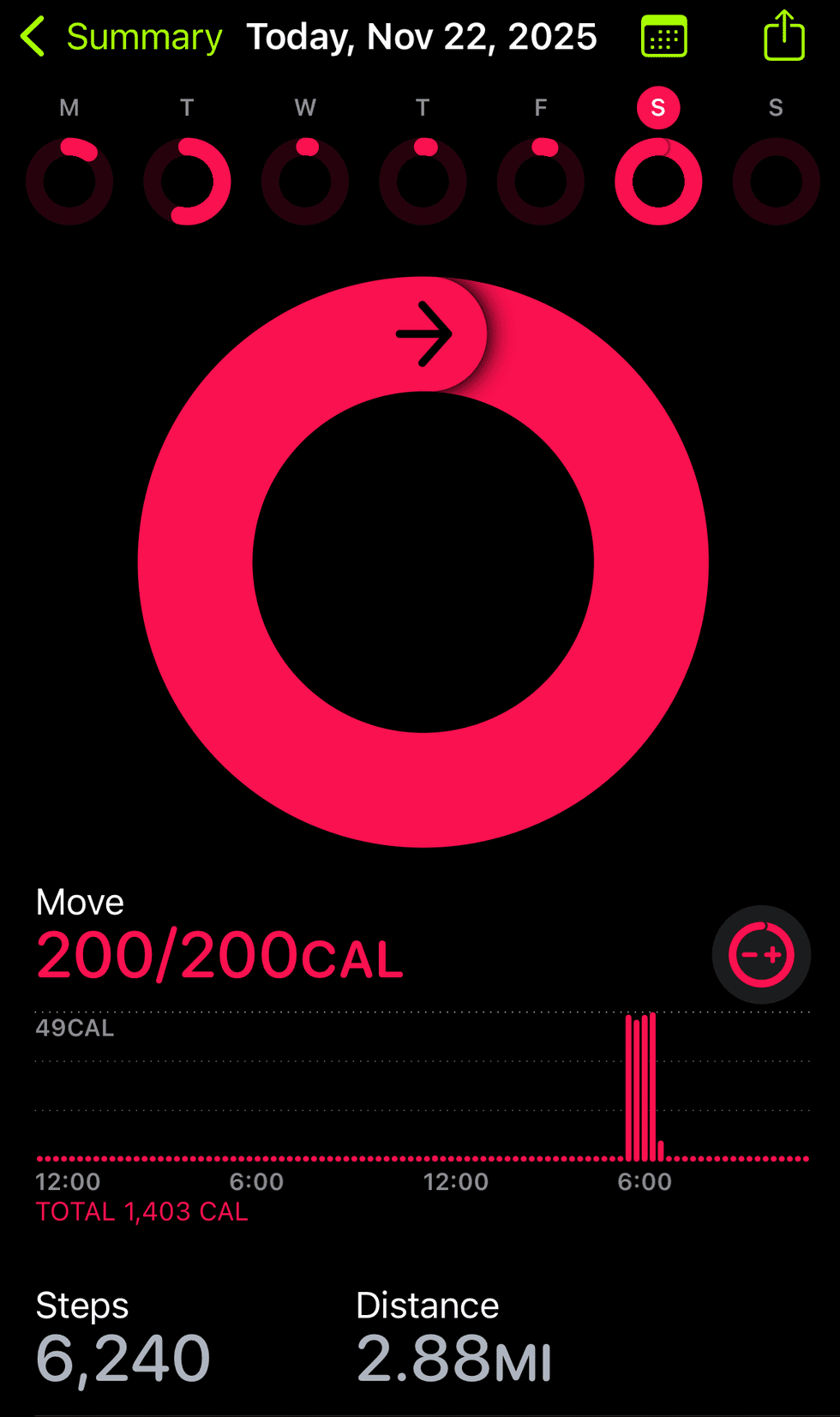 Я выполнял задание по ходьбе 6–6-6 в течение месяца, с 22 ноября по 22 декабря. Чтобы отслеживать свой прогресс, я использовал фитнес-приложение на своем телефоне, чтобы отслеживать свои шаги.